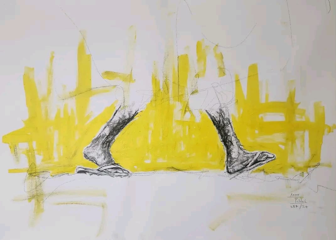 Gatela Pele merges the depth of charcoal with the fluidity of acrylic paint, rendered on canvas and presented in a museum-quality, custom-made frame that underscores its refined finish.